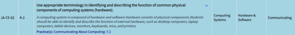 Let’s go back to 1A-CS-02. If you click the blue arrow next to each standard, you’ll find more information: